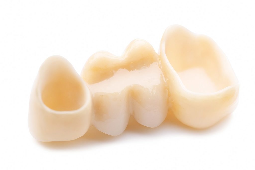 Brücken können wie Kronen entweder vollständig aus Keramik (biokompatibel) oder mit einer Metallbasis angefertigt werden.